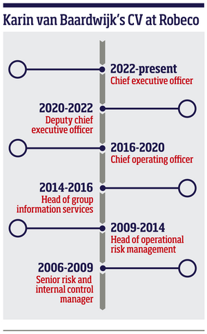 van Baardwijk held myriad roles across the organisation before landing the CEO seat at the Rotterdam-based asset manager. Having started as an external consultant in 2005, she served as head of group information services and head of operational risk management.