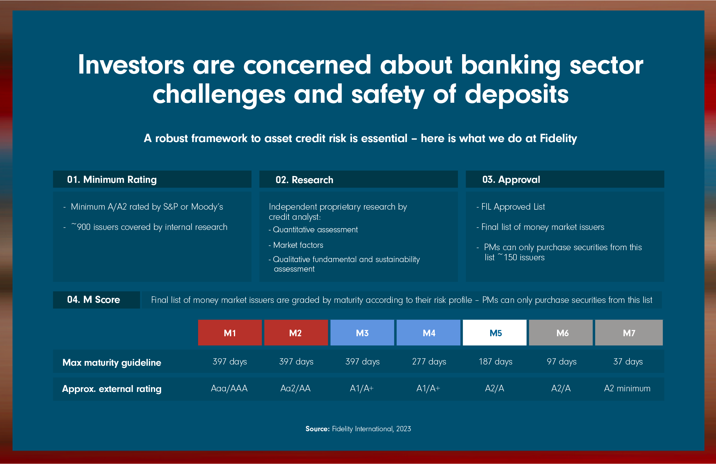This information is for investment professionals only and should not be relied upon by private investors. The value of investments and the income from them can go down as well as up so you may get back less than you invest. Investors should note that the views expressed may no longer be current and may have already been acted upon. Changes in currency exchange rates may affect the value of investments in overseas markets. An investment in a money market fund is different from an investment in deposits, as the principal invested in a money market fund is capable of fluctuation. Fidelity's money market funds do not rely on external support for guaranteeing the liquidity of the money market funds or stabilising the NAV per unit or share. An investment in a money market fund is not guaranteed. This fund invests in bonds whose price is influenced by movements in interest rates, changes in the credit rating of bond issuers, and other factors such as inflation and market dynamics. In general, as interest rates rise the price of a bond will fall. The risk of default is based on the issuer's ability to make interest payments and to repay the loan at maturity. Default risk may, therefore, vary between different government issuers as well as between different corporate issuers. Due to the greater possibility of default an investment in a corporate bond is generally less secure than an investment in government bonds. The investment policy of these funds means they can be more than 35% invested in transferable securities and money market instruments issued or guaranteed by an EEA State, one or more of its local authorities, a third country or a public international body to which one or more EEA States belongs. Reference to specific securities should not be construed as a recommendation to buy or sell these securities and is included for the purposes of illustration only. Investments should be made on the basis of the current prospectus, which is available along with the Key Investor Information Document (Key Information Document for Investment Trusts), current annual and semi-annual reports free of charge on request by calling 0800 368 1732. Fidelity only gives information on products and services and does not give investment advice to retail clients based on individual circumstances. Issued by FIL Pensions Management, authorised and regulated by the Financial Conduct Authority. Fidelity, Fidelity International, the Fidelity International logo and F symbol are trademarks of FIL Limited. UKM1023/384483/SSO/NA